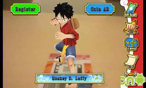 海賊王(One Piece AR Carddass Formation)是由日本著名游戲開發公司【NBGI】發行的一款利用手機攝像頭配合特制的AR卡片進行冒險的3D游戲。 本作先后登陸街機、IOS平臺,現在終于來到安卓平臺了。海賊FANS歡呼吧~!